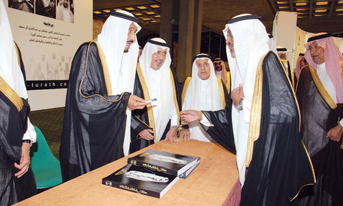 خطا بثقته المعهودة ومهابته المُحبَّبة محمَّلاً بوفاء لا يحسن مثله إلاَّ هو، إلى ركن تدشين الكتاب المصوَّر عن الملك خالد بن عبدالعزيز رحمه الله.. بعد افتتاحه للندوة العلمية لتاريخ الملك خالد بن عبدالعزيز في 25 جمادى الأولى 1431هـ بقاعة الملك فيصل للمؤتمرات.