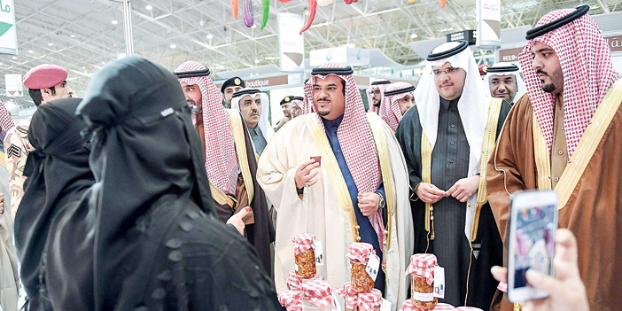نيابة عن صاحب السمو الملكي الأمير فيصل بن بندر بن عبدالعزيز أمير منطقة الرياض افتتح صاحب السمو الملكي الأمير محمد بن عبدالرحمن نائب أمير المنطقة، معرض الاستثمار من المنزل «منتجون 5» بمركز الرياض الدولي للمؤتمرات والمعارض الذي تنظمه غرفة الرياض بحضور رئيس وأعضاء مجلس إدارة الغرفة، ومشاركة نحو 60 سيدة من المستثمرات من المنزل تم تخصيص جناح خاص لكل منهن. وتجول سموه في أركان المعرض وتعرف على الكثير من الأنشطة التي تقدمها العارضات المشاركات، حيث أبدى سموه إعجابه بالمعروضات وحث المستثمرات على مواصلة الاهتمام بترقية جودة منتجاتهن وتعزيز مشروعاتهن، مؤكداً أن القطاعين الحكومي والخاص سيواصلان تقديم الدعم للسيدات المستثمرات من المنزل لما لذلك من أثر إيجابي على المجتمع.
