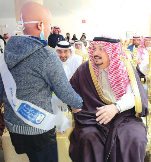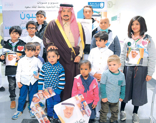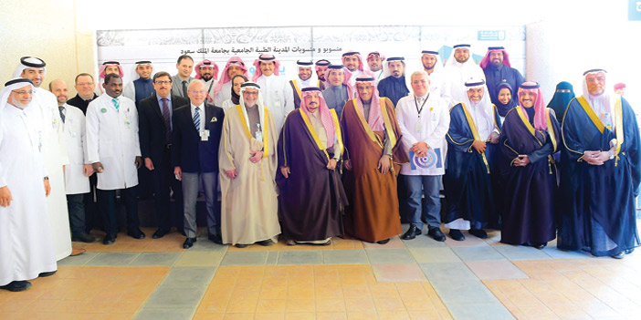 وقال سمو أمير منطقة الرياض في تصريح صحفي عقب الحفل: الحمد لله رب العالمين على هذه العطاءات التي ننعم بها في هذه البلاد.. وكل يوم نقطف ثمرة جديدة، خاصة في جامعة الملك سعود. تعودت منذ بداية عملي في المنطقة في كل عام على مشروع جديد على مستوى عالٍ؛ وهذا من فضل الله سبحانه وتعالى، ثم بفضل القيادة الحكيمة التي تعطي لهذه البلاد كل ما تستطيع لخدمة المواطن في كل موقع. وأضاف: أنا أتمنى لهذه الجامعة دوام العزة والسداد والتطور والتقدم.. وبلا شك وجودنا اليوم في مركز الأورام الجامعي في جامعة الملك سعود (المدينة الطبية) أعتقد أنه يمثل أحد المعطيات الكبيرة الكريمة التي نحظى بها. وبلا شك هذا صرح طبي صحي، سيكون عاليًا - بإذن الله - ومتطورًا كل عام أكثر وأكثر بما فيه الخير. وما سمعناه من طرح من معالي المدير الزميل الدكتور بدران العمر، والفيلم الذي عرض؛ إذ سمعنا أرقامًا جيدة تحققت.. فهذا - لله الحمد - دليل على أن العمل يسير بخطى ثابتة ودراسات مركزة.. وأتمنى - إن شاء الله - لهذه البلاد التوفيق في كل المجالات. وقد اطلع سموه على الاعتماد الكندي الذي حققته المدينة الطبية الجامعية, كما سجل كلمة لمنسوبي المدينة الطبية الجامعية بهذه المناسبة، ثم التُقطت الصور التذكارية بهذه المناسبة.