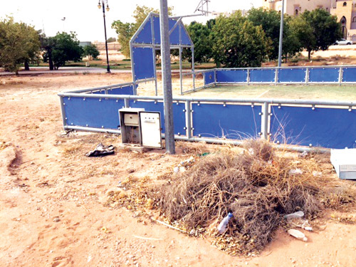 من المشاهدات التي رصدها مندوب «الجزيرة» قيام مجموعة من صهاريج الماء ليلاً بالتعبئة من بئر وخزان الحديقة، ونقله إلى مكان مجهول، في الوقت الذي يهمل فيه الغطاء النباتي الخاص بالحديقة بسبب عدم الري، وعدم وجود حارس أو عمال في الحديقة رغم مساحتها الشاسعة، وقطرها الذي يوازي طول 3 كلم تقريبًا. وكذلك وجود لعبة قرص دائرية متعطلة، تم اقتلاعها نهائيًّا، وعدم تركيب بديل عنها، وكذلك وجود ملعب كرة قدم للأطفال تالف وغير صالح للاستفادة منه مع انتشار حشائش مؤذية وبيوت للقوارض والنمل الأسود خاصة في الجزء الجنوبي المهمل، إضافة إلى المنظر مؤسف لعدد من النخيل التالفة التي قد تكون مصابة بالسوسة الحمراء، مع عدم حماية أو تسوير البئر وخزان المياه للوقاية من خطر اقتراب أو وصول الأطفال إليه.