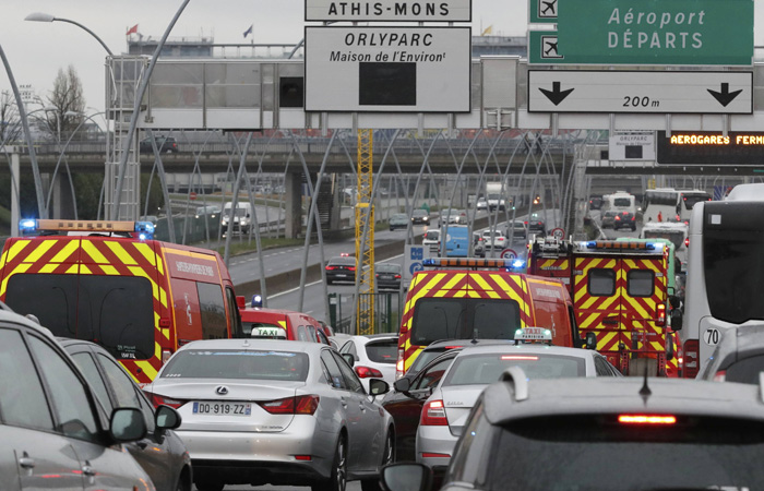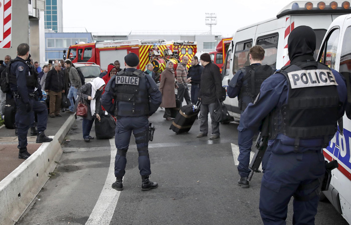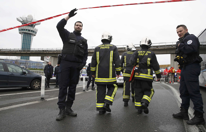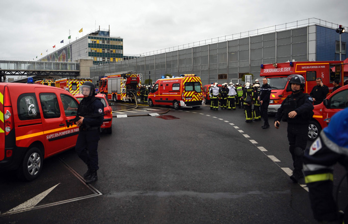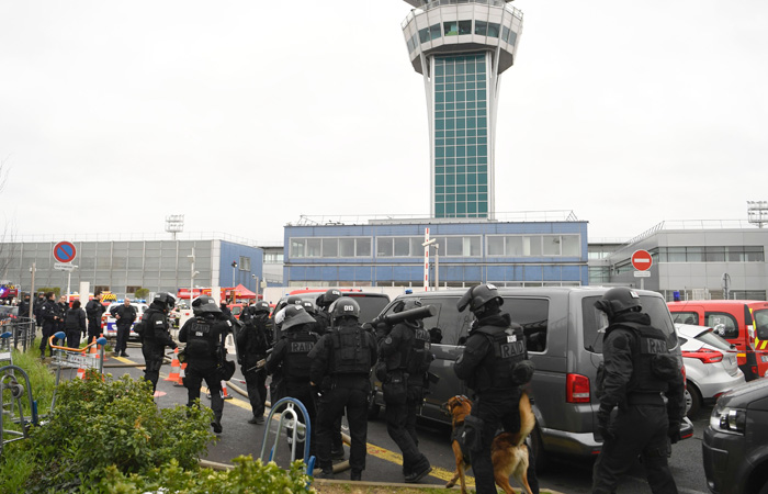 قتلت قوات الأمن الفرنسية رجلاً رميًا بالرصاص بعد محاولته الاعتداء على رجل أمن في مطار باريس-أورلي ، اليوم.