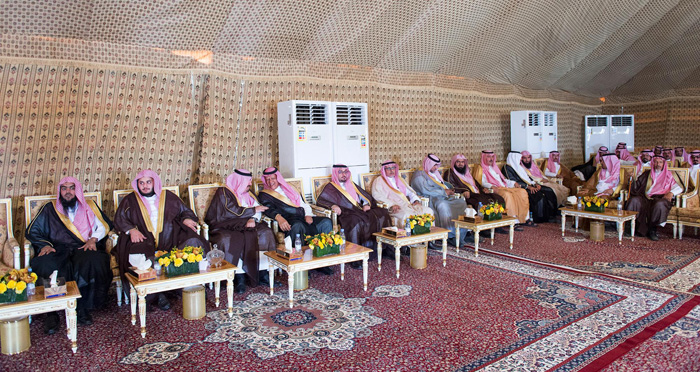استقبل خادم الحرمين الشريفين الملك سلمان بن عبدالعزيز في روضة خريم اليوم، رؤساء ومديري الإدارات الحكومية ورؤساء المراكز بمحافظة رماح، وجمعاً من أهالي المحافظة الذين قدموا للسلام عليه - رعاه الله - وتهنئته بسلامة الوصول.