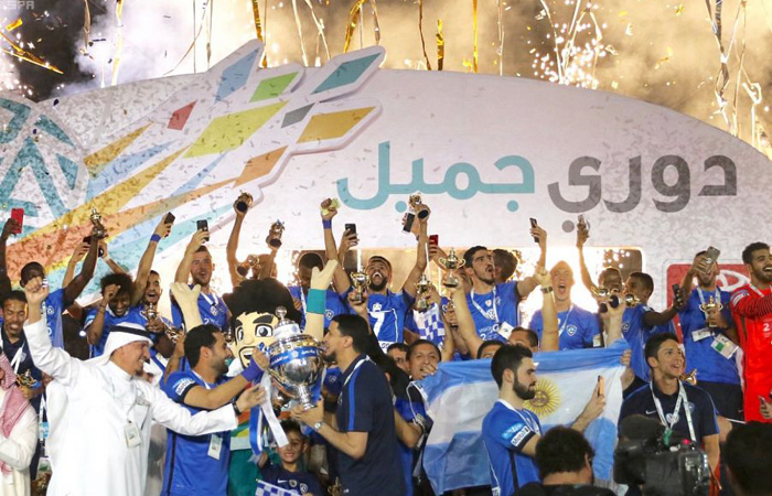 توّج رئيس مجلس إدارة الاتحاد السعودي لكرة القدم عادل بن محمد عزت ، فريق الهلال بكأس دوري جميل للمحترفين لكرة القدم والكؤوس المصغرة بعد تحقيقه لقب بطولة دوري جميل السعودي هذا الموسم ، عقب مباراة فريقي الهلال والنصر التي أقيمت اليوم على ملعب الملك فهد الدولي بالرياض وانتهت لمصلحة الهلال 5 ـ 1 ضمن مباريات الجولة 26 والأخيرة من المسابقة .