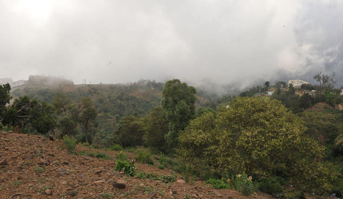 وبدت ملامح الجمال في الجبل الأسود الواقع إلى الشرق من مدينة جيزان وعلى بعد نحو 150 كيلو متراً ، من خلال البساط الأخضر الذي كسا الجبل جمالاً وبهاءً ، وازدانت المدرجات الزراعية ، فيما رصدت عدسة " واس " صورًا للسحاب وهو يعانق الجبل والمنازل ، في مشهد يتكرر يوميًا ، فيزداد معه الجبل الأسود بهجة .