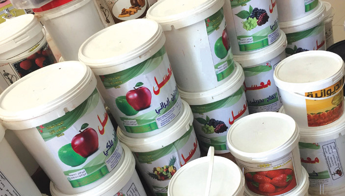 قبل الانتهاء من جولة سريعة في المتجر دخل أحد أبناء جلدة البائع ومعه عبوتان بلاستيكيتان (سطل) وهو مبتسم وبدأ يتناول الحديث مع البائع وإذا به يفتح العلبة ويخرج بواسطة إصبعه عينة من معجون معسل بنكهة الكابتشينو، وبفضول مني سألت ما شاء الله كابتشينوا قال نعم لكن هذا كيوت ودلع (حق) الجنس الناعم؟! والثاني بنكهة النعناع (حق الشاميات) وهن زبائننا الآن بكثرة فرائحتهما طيبة وخفيفة الضرر.
