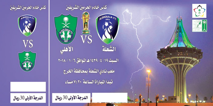 حددت إدارة نادي الشعلة أسعار تذاكر مباراة فريقها الكروي التي ستجمعه مساء غد السبت أمام الأهلي في كأس خادم الحرمين الشريفين، حيث تم تقسيم التذاكر لـ3 فئات: الفئة الأولى بـ200 ريال خصت للمنصة، والفئة الثانية بـ30 ريالاً للدرجة الأولى، فيما حددت قيمة تذكرة الدرجة الثانية بـ20 ريالاً.