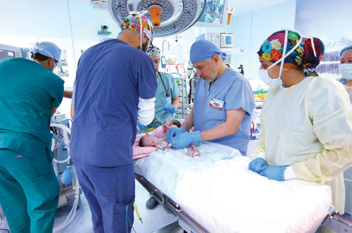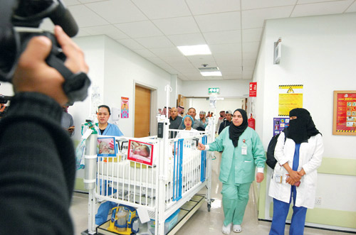 وقال معاليه : العملية لم تكن سهلة لوجود اشتراك كبير بين حنين والتوأم الطفيلي فرح ، ووجود تداخل بين الشرايين والأوردة كون فرح متطفلة تعتمد على التغذية من قلب حنين ، وهذا يشكل عبئاً كبيراً على قلب حنين ، لذا كان لا بد من التنسيق المسبق ودراسة الحالة الطبية بعناية. وأضاف: بتوفيق من الله سبحانه وتعالى ثم بخبرة الفريق الطبي استطعنا أن ندرس الحالة وأن نصل إلى الخطة المكونة من تسع مراحل ، مقدما شكره لخادم الحرمين الشريفين الملك سلمان بن عبد العزيز آل سعود وسمو ولي عهده الأمين -حفظهما الله-، وهنأ والدي الطفلة حنين على سلامتها.