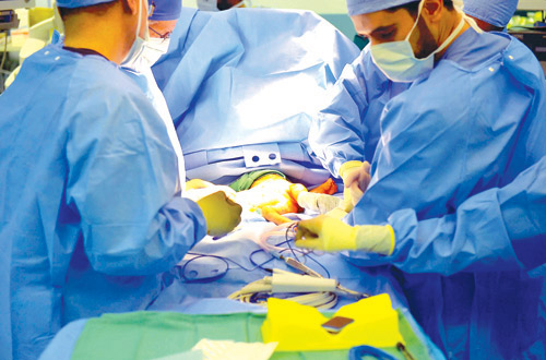 وكان الفريق الطبي والجراحي بقيادة معالي المستشار بالديوان الملكي المشرف العام على مركز الملك سلمان للإغاثة والأعمال الإنسانية الدكتور عبدالله بن عبدالعزيز الربيعة, قد بدأ صباح أمس, بإجراء عملية فصل التوأم السيامي الفلسطيني «فرح وحنين» في مستشفى الملك عبد الله التخصصي للأطفال بالرياض. وتأتي العملية إنفاذًا لتوجيهات صاحب السمو الملكي الأمير محمد بن سلمان بن عبدالعزيز آل سعود ولي العهد نائب رئيس مجلس الوزراء وزير الدفاع -حفظه الله- بنقل التوأم السيامي الفلسطيني «حنين وفرح»، إلى المملكة. وأوضح استشاري جراحة الأطفال أحد أعضاء الفريق الطبي المشارك في العملية الدكتور محمد النمشان, أن العملية بدأت من الساعة الثامنة صباحاً وتمر بتسع مراحل بدأت بمرحلة التخدير التي استغرقت ساعة، عقبها مرحلة التنظير للمثانة والقسطرة واستغرقت ساعة، ثم بدأت المرحلة الثالثة من العملية وهي الإعداد والتجهيز وقد استغرقت نصف ساعة للوصول إلى الأعضاء الداخلية. وبين أن الطفلة فرح ليس لديها مقومات الحياة، حيث لا تمتلك قلباً طبيعياً ولا رئتين، كما لا يوجد لديها قصبة هوائية ولديها ضمور في المخ، فنحن نعاملها كتوأم طفيلي, مفيداً أن العملية تستغرق منذ انطلاقتها تقريباً 15 ساعة ونسبة نجاحها تصل إلى 70%.