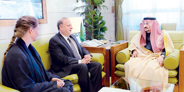 استقبل صاحب السمو الملكي الأمير فيصل بن بندر بن عبدالعزيز أمير منطقة الرياض في مكتبه بقصر الحكم أمس سفير كندا لدى المملكة دينيس هوراك، يرافقه القنصل أودري فيرنو. وجرى خلال الاستقبال تبادل الأحاديث الودية ومناقشة عدد من الموضوعات. وأعرب سموه عن تمنياته للسفير الكندي بالتوفيق في مهام عمله، منوهاً بالعلاقات المتينة التي تربط المملكة وكندا.