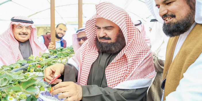 كما تحدث المهندس اللحيدان للشيخ السديس والحضور عن الزراعة المائية للفراولة وهي إحدى الطرق المبتكرة مؤكداً أن مهرجان الفراولة لهذا العام الذي سينطلق بتاريخ 29 من هذا الشهر سيشهد فتح أكثر من 16 بيتا محميا لاستقبال الجمهور في فعالية قطف الفراولة مبيناً أن المهرجان في نسخته الأولى من العام الماضي استقبل أكثر من 100 ألف زائر خلال10 أيام.
