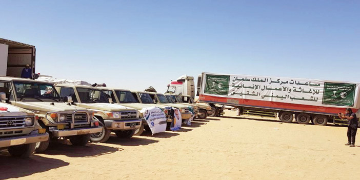 وقد وصلت إلى محافظة الجوف 8 شاحنات إيوائية تحمل تمورًا وبطانيات وسلال غذائية.
