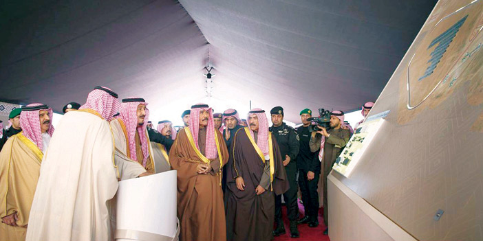 عقب ذلك تفضل خادم الحرمين الشريفين - رعاه الله - بتدشين ميدان الملك عبدالعزيز لسباقات الهجن الذي يبلغ طوله 8 كم ويضم 7 مسارات تستوعب 100 مطية ويتسع لـ 200 سيارة.