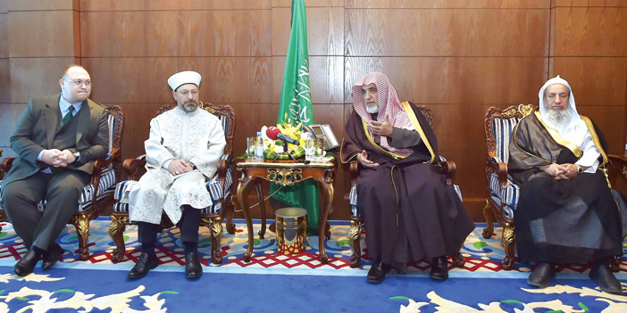 استقبل معالي وزير الشؤون الإسلامية والدعوة والإرشاد الشيخ صالح بن عبد العزيز بن محمد آل الشيخ بمقر الوزارة في الرياض ، معالي رئيس الشؤون الدينية بالجمهورية التركية الدكتور علي أرباش والوفد المرافق له . وفي بداية اللقاء، ألقى معالي الشيخ صالح آل الشيخ كلمة رحب فيها بالدكتور علي أرباش في زيارته الأولى لوزارة الشؤون الإسلامية والدعوة والإرشاد، وقال معاليه: إن العلاقات التي تربط المملكة العربية السعودية والجمهورية التركية هي علاقات مميزة على جميع الأصعدة في الجانب الديني ، والسياسي ، والاقتصادي ، والعلمي، ومن ثم فإن مد الجسور والتواصل دائما هو في مصلحة هذه العلاقات بين الأشقاء.