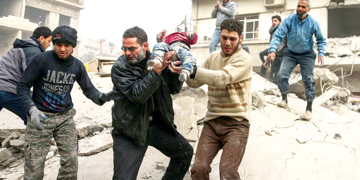 واصلت قوات النظام السوري أمس الخميس ولليوم الرابع على التوالي قصفها العنيف للغوطة الشرقية المحاصرة قرب دمشق لتتخطى حصيلة القتلى منذ الاثنين أكثر من 220 مدنيا، في وقت فشل فيه مجلس الأمن مجدداً أمس في التوصل إلى نتيجة ملموسة تقضي بإعلان هدنة إنسانية، إذ خرج عدد كبير من سفراء الدول الـ 15 الأعضاء في المجلس من الاجتماع المغلق بوجوه متجهمة من دون أن يدلوا بأي تصريح لوسائل الإعلام. وتشن قوات النظام السوري منذ الاثنين حملة عنيفة على الغوطة الشرقية معقل الفصائل المعارضة قرب دمشق تتخللها غارات وقصف جوي ومدفعي. وقال الطبيب حمزة في مستشفى عربين لوكالة فرانس برس إنها من أسوأ أربعة أيام تمر على الغوطة الشرقية، فمنذ العام 2011 لم تشهد الغوطة الشرقية قصفاً بالحجم الذي عرفته في الساعات الـ96 الأخيرة.