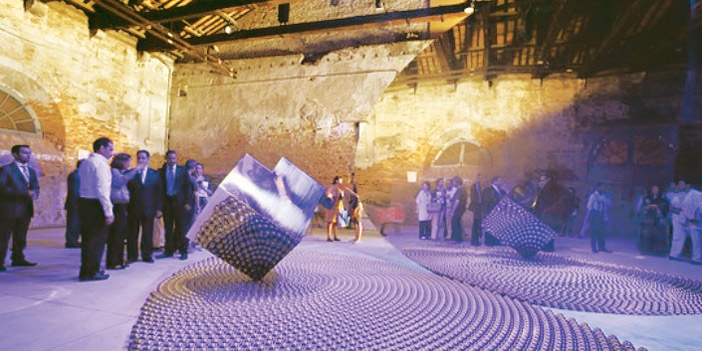 وعند استحضار مشاركات وحضور الفن السعودي في البينالي نجد أن الحدث الأبرز الذي أقيم عام 2011م المتمثّل في العمل الذي عنوانه (الفلك الأسود)من تنفيذ الفنانتين شادية ورجاء عالم وقدم بالتنسيق بين وزارة الثقافة والإعلام وإدارة بينالي البندقية ووضع له مسابقة بين مجموعة من الفنانين ويمثِّل شكلاً بيضوياً من الفولاذ المصقول، أقيم على الأرض على مساحةٍ بالحجم نفسه، يتشكل من كريّات الكروم المرصوفة فسيفسائياً على شكل دوائر.