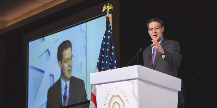 جاء ذلك في كلمة لمعالي الدكتور العيسى في مؤتمر واشنطن للتحالف بين أتباع الأديان ومحبي السلام، الذي نظمه منتدى تعزيز السلم في واشنطن بحضور 400 شخصية دينية وسياسية واجتماعية وفكرية وحكومية من مختلف دول العالم.