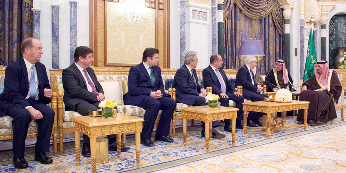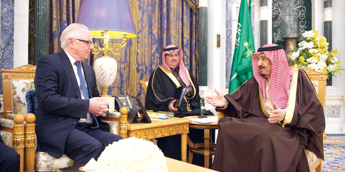 استقبل خادم الحرمين الشريفين الملك سلمان بن عبد العزيز آل سعود ـ حفظه الله ـ في مكتبه بقصر اليمامة في الرياض أمس، النائب عن حزب المحافظين البريطاني اللورد فرانسيس ماودي يرافقه وفد من مجموعة الشرق الأوسط في حزب المحافظين.