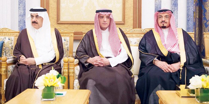 حضر الاستقبال، معالي وزير الدولة عضو مجلس الوزراء الدكتور مساعد بن محمد العيبان، ومعالي وزير الخارجية الأستاذ عادل بن أحمد الجبير، ومعالي نائب رئيس مجلس الشورى الدكتور محمد بن أمين الجفري.