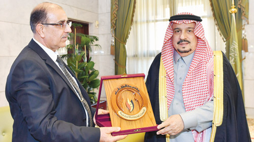 استقبل صاحب السمو الملكي الأمير فيصل بن بندر بن عبدالعزيز أمير منطقة الرياض بمكتب سموه بقصر الحكم أمس رئيس مجلس محافظة بغداد الدكتور رياض العضاض والوفد المرافق له. وفي بداية الاستقبال رحب سموه بالجميع في بلدهم الثاني المملكة متمنياً لهم طيب الإقامة. وجرى تبادل الأحاديث الودية، وبحث عدد من الموضوعات المشتركة بين البلدين الشقيقين. وقد أقام سمو أمير منطقة الرياض مأدبة غداء تكريماً لرئيس مجلس محافظة بغداد ومرافقيه.