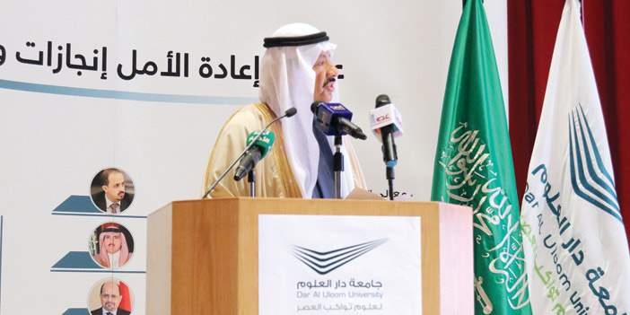 أكد معالي رئيس مجلس أمناء جامعة دار العلوم الأستاذ عبد العزيز بن علي التويجري، بأن بُعد النظر والرؤية الثاقبة التي تتمتع بها قيادة المملكة الحازمة حدت بها نحو إزالة التهديدات الخارجية التي يمكن أن تؤثر سلباً على رؤية الوطن المستقبلية الطموحة، فكان قرار الحزم والعزم والوحدة والتحالف في القضاء على هذه المهددات وفي ذات الهدف تأمين مستقبل الشعب اليمني الجار والشقيق ضد التهديدات المدفوعة من خارج حدود الوطن، ومنح هذا الشعب الأمل في التخلص من هذا الكابوس الجاثم على صدره، فَيدٌ بالسيف تقطع مصادر العدوان، ويد تغرس أشجار الأمل.