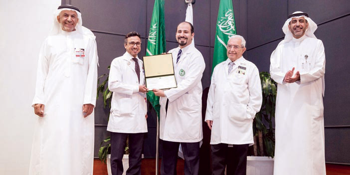 وفي نهاية الحفل، سلَّم د.الراجحي، بمشاركة كل من د. طبارة د. نويلاتي، ود. صالح المسفر المدير الطبي ورؤساء أقسام التخصصات الدقيقة، شهادات التخرج للأطباء.