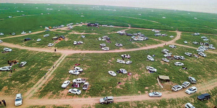 يذكر أنه وخلال الأيام الماضية تحولت هذه المزارع التي تقدر مساحتها بمليون متر مربع إلى فيضه وبساط أخضر تحيط به الكثبان الرملية من عدة جهات وتحولت إلى متنفس ومكشات للناس من القصيم وخارجه. بل ومن الكويت وعج المكان بآلاف السيارات والعوائل والأفراد وصاحبه خدمات متنقلة من الأسرالمنتجة من مشروبات ومأكولات. وخدمات الترفيه وأميزها الطيران الشرعي الذي وثق جمال المكان وتناقلت وسائل التواصل الاجتماعي والشعراء هذه البادرة الفريدة موثقة بالصور الجوية ومقاطع الفيديو وقدموا سيلاً من عبارات الثناء والشكر لهذه العائلة الكريمة التي تحب خدمة الناس.