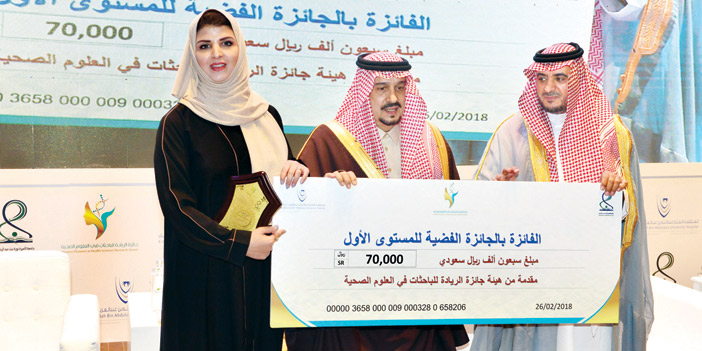 ثمن صاحب السمو الملكي الأمير فيصل بن بندر بن عبد العزيز، أمير منطقة الرياض، الدعم الكبير الذي تقدمه القيادة الرشيدة لأبناء الوطن المبدعين والمبتكرين، مؤكداً أن هذا الدعم أوصل أبناء الوطن للريادة في العديد من المجالات البحثية والعلمية. وقال سموه في تصريح صحفي عقب رعايته حفل جائزة الريادة للباحثات في العلوم الصحية بجامعة الأميرة نورة بنت عبدالرحمن مساء أمس، إن أبناء وبنات الوطن مبدعون ورواد في كافة أعمالهم، مشيراً سموه إلى أن شراكة الرجال والنساء ساهمت في هذه الريادة والتميز. وأشاد الأمير فيصل بن بندر بالجائزة مبيناً أنها مثمرة ومبدعة ورائعة وناجحة، متمنياً سموه للفائزات دوام التوفيق وسائلاً المولى للجامعة دوام التوفيق والمسيرة الناجحة في جميع أعمالها. وتأتي هذه الجائزة كإحدى مبادرات مركز أبحاث العلوم الصحية بجامعة الأميرة نورة بنت عبدالرحمن التي تهدف إلى دعم حركة البحث العلمي وتشجيع الباحثات في مجال الأبحاث الصحية وإثراء الدراسات الطبية ودراسات صحة المرأة بما يحقق الأهداف الوطنية، بالإضافة إلى تحقيق غاية الجامعة الاستراتيجية التي تتمثل في دعم مراكز الأبحاث والكراسي العلمية في كليات الجامعة وتعزيز دعم البحوث مالياً. وفي مستهل الحفل ألقت المتحدثة الرئيسية كبير علماء أبحاث السرطان ورئيس مركز الأبحاث بمركز الملك فهد الوطني للأورام الدكتورة خولة بنت سامي الكريع، كلمة عن «الإنتاج البحثي للمرأة السعودية»، ومن ثم عرض فيلم قصير عن الجائزة وموائمتها مع «رؤية المملكة 2030»، تلاها كلمة ألقتها استشاري ورئيس البحوث الجينية في مركز أبحاث مدينة الملك فهد الطبية الدكتورة ملاك الثقفي، عن «تحديات المرأة في البحث العلمي»، بعد ذلك تحدث أمين عام الجائزة والمدير العام التنفيذي لمستشفى الملك عبدالله بن عبدالعزيز الجامعي الدكتور أحمد بن محمد أبو عباة، عن الجائزة وفروعها . عقب ذلك ألقت معالي رئيس هيئة الجائزة ومديرة جامعة الأميرة نورة بنت عبدالرحمن الدكتورة هدى بنت محمد العميل، كلمة أكدت فيها سعي الجامعة من خلال رؤيتها لتكون منارة المرأة للعلم والقيم وإذكاء البحث العلمي والإبداع وتعزيز المساهمة في تحقيق رؤية المملكة 2030، التي تهدف إلى تحقيق التوسع والتميز البحثي وتهيئة البيئة البحثية المحفزة.