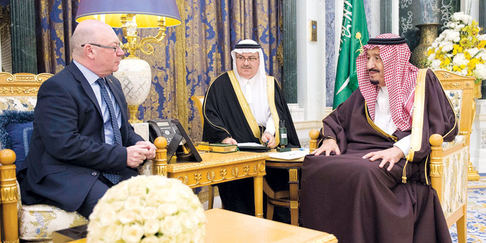 استقبل خادم الحرمين الشريفين الملك سلمان بن عبدالعزيز آل سعود ـ حفظه الله ـ في مكتبه بقصر اليمامة في الرياض أمس، معالي وزير الدولة لشؤون الشرق الأوسط وشؤون التنمية الدولية البريطاني اليستر بيرت، ومعالي رئيس أركان الدفاع البريطاني الفريق أول ستيورات بيتش.
