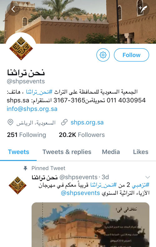 يهتم بنشر الوعي في مجال حفظ التراث السعودي وتحديداً التراث المعنوي الثقافي، إلى جانب استعراض فعاليات وبرامج الجمعية السعودية للمحافظة على التراث.