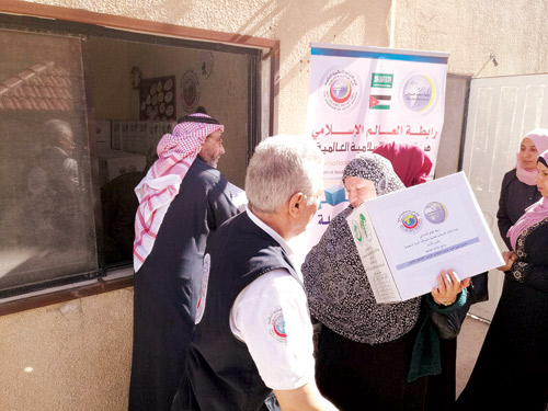 وزعت رابطة العالم الإسلامي ممثلة بهيئة الإغاثة الإسلامية العالمية 3 آلاف سلة غذائية و1500 بطانية و3 آلاف كوبون غاز على الأسر الفقيرة في الأردن واللاجئين السوريين من خلال مراكز هيئة الاغاثة العشر المنتشرة في مختلف المحافظات الاردنية والمخيمات السورية تكفي لأكثر من 15 ألف فرد بتكلفة 352.341 ريال، وتمثلت المواد الغذائية في كميات من الدقيق والأرز والعدس والفريكة والبرغل الخشن والسكر والزيت، باشراف مدير عام البرامج والرعايات بالأمانة العامة للهيئة بجدة الدكتور طه الخطيب.