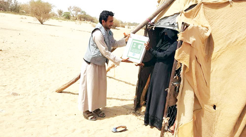 دشّن مركز الملك سلمان للإغاثة والأعمال الإنسانية توزيع التمور في محافظة الجوف التي تستهدف 5000 أسرة، وذلك بحضور محافظ الجوف اللواء أمين علي العكيمي، ووكيل المحافظة يحى عيظه عليان، وذلك ضمن خطة العمليات الإنسانية الشاملة في اليمن، وفي إطار المشاريع الإغاثية التي ينفذها المركز في المحافظة. وبدأ المركز اليوم من خلال الشريك المنفذ « ائتلاف الخير « بتوزيع 2000 كرتون تمر في مديرية الحزم يستفيد منها 12000 فرد.