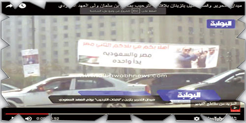 وقالت أن اللافتات جاءت تحمل عبارات مثل: «أهلا بكم في بلدكم الثانية مصر.. مصر والسعودية يد واحدة»، إلى جانب صورة للقاء الرئيس السيسي بالملك سلمان بن عبدالعزيز آل سعود.