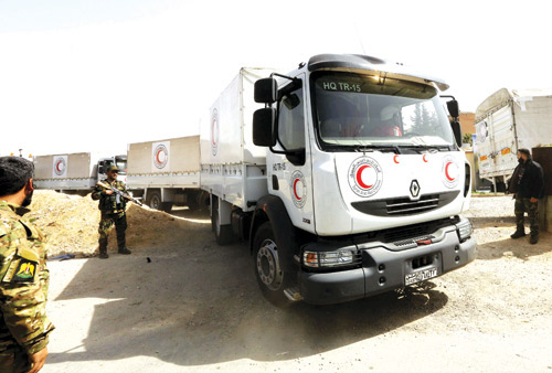 في غضون ذلك بدأ مجلس حقوق الإنسان التابع للأمم المتحدة تحقيقًا في هجمات الجيش السوري على المدنيين المحاصرين في الغوطة الشرقية، وذلك في قرار تم تمريره أمس الاثنين. ودان المجلس بشدة قصف المستشفيات باعتباره ضمن جرائم الحرب، كما استنكر عرقلة وصول قوافل المساعدات وما يتردد عن استخدام أسلحة كيميائية في المنطقة. وحث المجلس جميع أطراف الصراع على الالتزام بوقف إطلاق النار الذي طالب مجلس الأمن الدولي بتنفيذه لمدة شهر. وجرى تمرير القانون بموافقة 29 دولة، فيما امتنعت 14 دولة عن التصويت، في مقابل تصويت بالرفض من أربع دول هي (بوروندي والصين وكوبا وفنزويلا). كما صرح مسؤولون بأن قوافل المساعدات الأممية في طريقها إلى الغوطة الشرقية، ومن المفترض أن تصل اليوم الاثنين. وقالت ليندا توم المتحدثة باسم مكتب تنسيق الشؤون الإنسانية التابع للأمم المتحدة في سوريا إن «الشاحنات في طريقها إلى معبر الوافدين شمال شرق دوما القريبة من العاصمة دمشق». مضيفة بأنه سيتم الإعلان عند دخول المنطقة. وتتألف القافلة من 46 شاحنة، تحمل إمدادات طبية وغذائية. وقال المكتب في بيان منفصل: «إن الأمم المتحدة وشركاءها حصلوا على موافقة لتقديم المساعدة لـ70 ألف شخص بحاجة إليها في المنطقة المحاصرة».