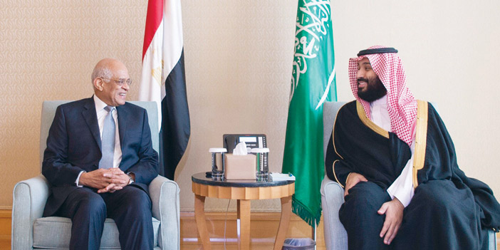كما التقى صاحب السمو الملكي الأمير محمد بن سلمان بن عبدالعزيز ولي العهد نائب رئيس مجلس الوزراء وزير الدفاع، في القاهرة أمس رئيس مجلس النواب المصري الدكتور علي عبدالعال، بحضور الوفد الرسمي المرافق لسمو ولي العهد. وجرى خلال اللقاء استعراض العلاقات الأخوية بين البلدين الشقيقين، ومجالات التعاون بين المملكة ومصر في الجانب البرلماني.