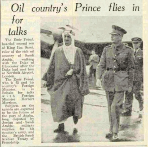 وفي عام 1364 هـ و1367هـ، قام الأمير فيصل (الملك) رحمه الله بزيارة إلى لندن في تلك السنوات لتمثيل المملكة في بحث قضية فلسطين مع عدد من رؤساء العالم، وفي عام 1370هـ /1951م أرسل الملك عبدالعزيز ابنه الملك فيصل ليمثل المملكة في مؤتمر ترسيم الحدود البحرية بين المملكة والبحرين والكويت ولبحث قضية الحدود مع عمان (البريمي)، وفي عام 1387هـ/1967م وبعد أن تولى الملك فيصل الحكم بعدة سنوات قام بزيارة لعدد من دول العالم فكانت بريطانيا من أهم تلك الدول التي قام بزيارتها حيث أبرم عدة صفقات ومنها صفقة شراء طائرات حربية بريطانية، ومما يتضح أن تلك الزيارة كان لها أثر سياسي إيجابي على البلدين.