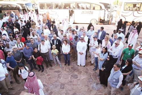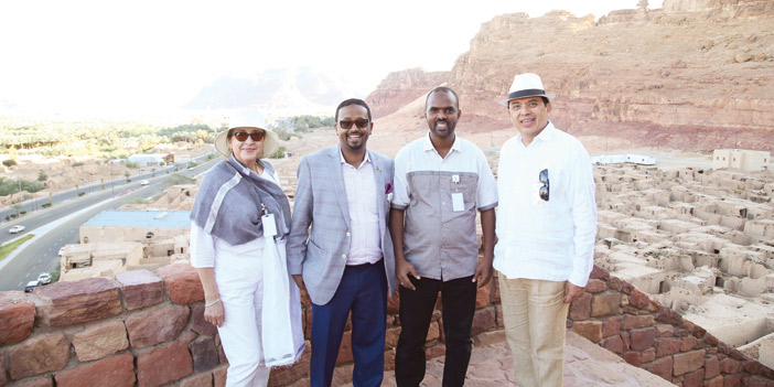 وتجول السفراء في مدائن صالح مستمعين لشرح تعريفي من المرشد السياحي خالد الحربي عن مجموعة قصر البنت والديوان وقصر الفريد والقلعة الإسلامية ومتحف سكة حديد الحجاز، وشاهدوا فيه صوراً لمحطات الطريق « لمحطات بين تبوك والحجر، ومحطة مبرك الناقة، ومحطات السكة بين العلا وهدية، والمحطات القريبة من المدينة المنورة، وشاهدوا عرض القطع الأثرية، ومستودع الفحم الحجري، وعربات الخيل، وقافلة الجمال، والقاطرات.