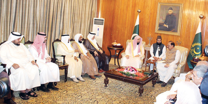 وقال فخامته في كلمته التي ألقاها خلال استقباله أمس فضيلة إمام وخطيب المسجد الحرام الشيخ الدكتور صالح بن محمد آل طالب في إطار زيارته الحالية لباكستان، وذلك في القصر الرئاسي بإسلام آباد.. قال: إن باكستان حكومة وشعبًا تقدر علاقاتها مع المملكة العربية السعودية. موضحًا أن البلدين يرتبطان بعلاقات ودية، وروابط صداقة، تستند إلى قواسم الدين والأخوَّة والتاريخ والقيم الثقافية المشتركة.. ويتمتعان بتوافق الرؤى إزاء معظم القضايا المهمة، ولاسيما في المحافل الإقليمية والدولية، إلى جانب القضايا السياسية والاقتصادية، وغيرها.