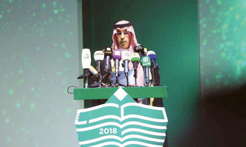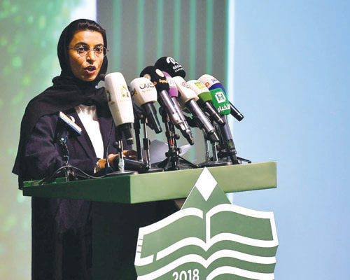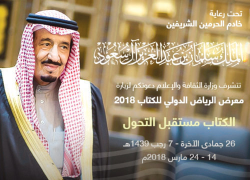 تحت رعاية خادم الحرمين الشريفين الملك سلمان بن عبد العزيز آل سعود -حفظه الله- افتتح معالي وزير الثقافة والإعلام الدكتور عواد بن صالح العواد مساء أمس معرض الرياض الدولي للكتاب 2018 وذلك في مركز المعارض والمؤتمرات بالرياض، بحضور معالي وزيرة الثقافة وتنمية المعرفة بدولة الإمارات العربية المتحدة (ضيف الشرف لهذا العام) الأستاذة نورة بنت محمد الكعبي. وقد أقيم حفل خطابي بهذه المناسبة بدئ بتلاوة آيات من الذكر الحكيم، ثم قدم عرض الافتتاح المرئي المقتبس من فكرة شعار المعرض لهذا العام « الكتاب.. مستقبل التحول».