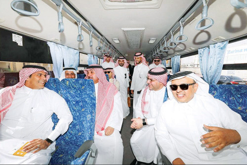 استقل معالي وزير النقل رئيس مجلس إدارة هيئة النقل العام أمس الأربعاء إحدى حافلات النقل العام البديلة لحافلات «خط البلدة» من نقطة التوقف بحي المروج، كما حضر الجولة معالي رئيس هيئة النقل العام الدكتور رميح بن محمد الرميح، حيث انطلقت الجولة ضمن مسار الحافلات الرابط بين شمال الرياض ومركزها في البطحاء.