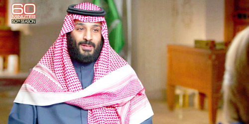 وفي شأن آخر قال سمو ولي العهد في مقابلة تلفزيونية في البرنامج العالمي «60 دقيقة « على شبكة (CBS) التلفزيونية الأمريكية، إن أسامة بن لادن جند 15 سعودياً في هجمات 11 سبتمبر بهدف واضح.