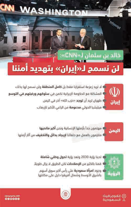 وحول إيران وتهديداتها في المنطقة، أكد الجبير أن في المنطقة رؤيتان، رؤية تسعى للحياة تقودها المملكة العربية السعودية، ورؤية ظلامية تقودها إيران، مشيراً إلى أن الاتفاق النووي لم يعالج سلوك إيران ولم يوقف تدخلاتها وتهديداتها الأمنية في المنطقة، وزاد: هناك اتفاق أوروبي أمريكي على خطورة التهديدات الإيرانية.