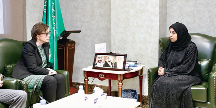 التقت معالي نائبة وزير العمل والتنمية الاجتماعية للتنمية الاجتماعية الدكتورة تماضر بن يوسف الرماح، في مقر الوزارة في مدينة الرياض أمس، معالي وزيرة الدولة للشؤون الخارجية في مملكة السويد أنيكا سودر، والوفد المرافق لها. وجرى خلال اللقاء، بحث عدد من الموضوعات ذات الاهتمام المشترك، وسبل تعزيزها بما يخدم البلدين في مختلف المجالات والأصعدة، كما تطرق اللقاء إلى تمكين عمل المرأة في سوق العمل انطلاقًا من رؤية المملكة 2030.