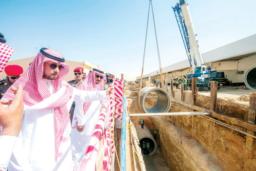 كما اطلع سمو النائب على سير العمل بمشروعات تصريف السيول بمدينة بريدة التابعة لأمانة المنطقة، واستمع لشرح مفصل عن المخططات والتصاميم الهندسية الخاصة بتلك المشروعات، التي يتم من خلالها تطبيق المعايير العالمية في الجودة، ونسب الإنجاز المتحققة في تلك المشروعات، ومنها مشروع إنشاء خطوط تصريف السيول بطريقة الدفع النفقي «الثقب الأفقي» الذي بلغت تكلفته قرابة 50 مليون ريال بحي خضيراء، ومشروع استكمال شبكة تصريف سيول طريق الملك عبدالله بمدينة بريدة داخل حيي النقع والنور، حيث بلغت قيمة عقد المشروع 95390175 ريالاً.