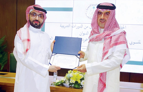 سلَّم معالي الدكتور حسام بن عبدالمحسن العنقري رئيس ديوان المراقبة العامة الشهادات لمنسوبي إدارات المراجعة الداخلية في الأجهزة الحكومية والمؤسسات العامة في ختام مشاركتهم في الدورة التدريبية التي عقدها الديوان بمقره الرئيس بمدينة الرياض.