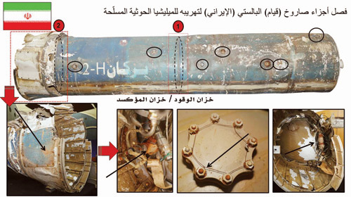 وقال إن هذه الصواريخ التي تشاهدونها أمامكم والتي تم إطلاقها على العاصمة الرياض وهي صاروخ (صياد 2) وصواريخ أرض أرض.. وصاروخ (قيام الإيراني.. وصاروخ زلزال 1-2-3 وهذه الصواريخ أرسلت للحوثيين وجميع الأدلة مكتوبة على هذه الصواريخ، موضحاً بأنه تم تحييد 87 % من هذه الصواريخ والتي بلغ عددها 104 صاروخ أطلقت على المملكة، ومعظم هذه الصواريخ تأتي من محافظة صعدة وشمال عمران.