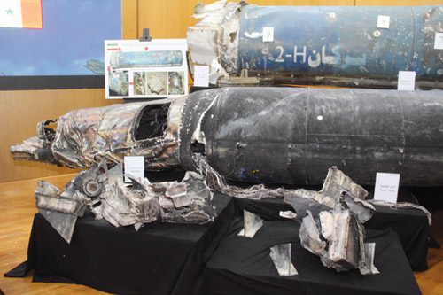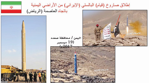 بحضور سفراء الدول المعتمدين لدى المملكة والملحقين العسكريين لدول التحالف لدعم الشرعية في اليمن استعرض المتحدث باسم قوات التحالف العقيد تركي المالكي الهجمات الصاروخية التي أرسلها الحوثيون نيابة عن إيران إلى كل من الرياض وخميس مشيط ونجران وجازان وعددها (7) صواريخ بالستية، حيث رحب المالكي بأصحاب المعالي والسعادة سفراء الدول الشقيقة والصديقة وأطلعهم على استهداف المملكة بهذه الصواريخ. وقال: لقد تعرضت العاصمة الرياض إلى عدوان همجي غاشم قام به الحوثيون الذين يحاربون نيابة عن إيران الشريرة، حيث أطلقت هذه المليشيات 7 صواريخ يحمل البصمات الإيرانية.. هذا النظام الراعي للإرهاب والإرهابيين يهدد بصواريخه المملكة ولكننا لن نسمح له بالتطاول على المملكة ونحن لها بالمرصاد.