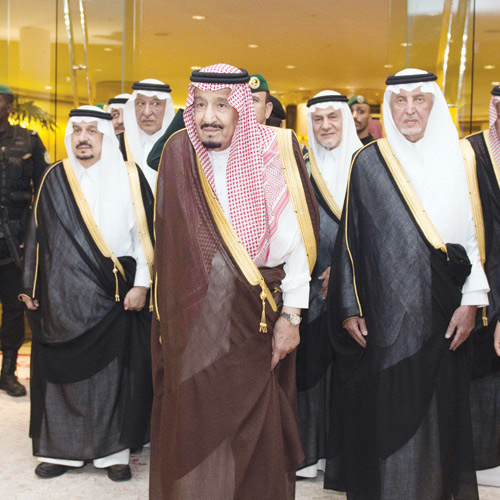 ولدى وصول خادم الحرمين الشريفين قاعة الأمير سلطان الكبرى بفندق الفيصلية يرافقه صاحب السمو الملكي الأمير سعود بن سلمان بن عبدالعزيز وصاحب السمو الملكي الأمير نايف بن سلمان بن عبدالعزيز، كان في استقباله - أيده الله - صاحب السمو الملكي الأمير خالد الفيصل بن عبدالعزيز مستشار خادم الحرمين الشريفين أمير منطقة مكة المكرمة الرئيس التنفيذي لمؤسسة الملك فيصل الخيرية رئيس هيئة جائزة الملك فيصل العالمية، وصاحب السمو الملكي الأمير تركي الفيصل رئيس مجلس إدارة مركز الملك فيصل للبحوث والدراسات الإسلامية، وصاحب السمو الملكي الأمير فيصل بن بندر بن عبدالعزيز أمير منطقة الرياض، وصاحب السمو الأمير بندر بن سعود بن خالد أمين عام مؤسسة الملك فيصل الخيرية.