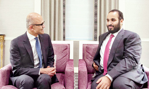 كما التقى صاحب السمو الملكي الأمير محمد بن سلمان بن عبدالعزيز ولي العهد نائب رئيس مجلس الوزراء وزير الدفاع في سياتل أمس الرئيس التنفيذي لشركة مايكروسوفت ساتيا ناديلا. وشهد اللقاء تبادل الأحاديث حول التعاون بشأن تدريب وتأهيل الكفاءات الوطنية، ودعم التحول الرقمي والابتكار القائم على المعرفة وفقاً لرؤية السعودية 2030. حضر اللقاء صاحب السمو الملكي الأمير خالد بن سلمان بن عبدالعزيز سفير خادم الحرمين الشريفين لدى الولايات المتحدة الأمريكية والوفد الرسمي المرافق لسمو ولي العهد وعدد من المسؤولين في شركة مايكروسوفت.