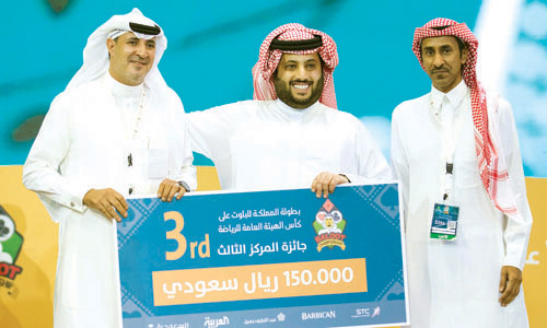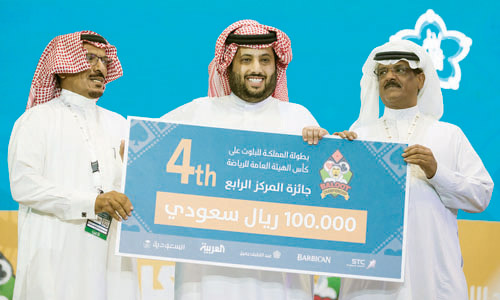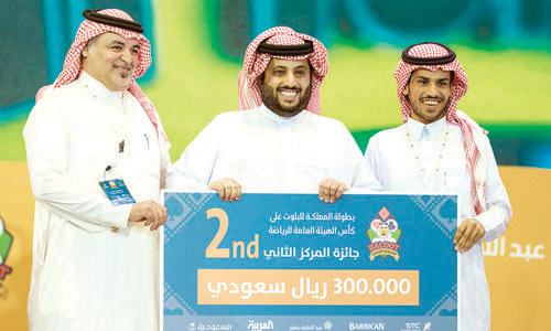 توَّج معالي رئيس مجلس إدارة الهيئة العامة للرياضة، رئيس اللجنة الأولمبية العربية السعودية، الأستاذ تركي آل الشيخ، فريق أبطال مجموعة السبيت المكون من بدر أبو حيمد وماجد أبو حيمد ببطولة المملكة للبلوت على كأس الهيئة العامة للرياضة، حيث حصل الفريق على جائزة المركز الأول البالغة نصف مليون ريال وسيارة من نوع لكزس، وذلك بعد فوزه في المباراة النهائية على فريق أبطال مجموعة الهاص المكون من سعود العنزي وحسين العنزي، الذي فاز بجائزة المركز الثاني البالغة 300 ألف ريال، فيما فاز فريق أبطال مجموعة الديمن، المكون من نواف المطيري وصالح الزهراني بجائزة المركز الثالث البالغة 150 ألف ريال بعد فوز الفريق في مباراة تحديد المركزين الثالث والرابع على فريق أبطال مجموعة الشيريا، المكون من نواف العتيبي وعبيد الشيباني، واللذان حصلا على مبلغ 100 ألف ريال. وفور نهاية المباراة الختامية للبطولة، أقيمت «مواجهة شرفية»، شارك فيها معالي رئيس مجلس الإدارة، الأستاذ تركي آل الشيخ، إلى جوار الكابتن سامي الجابر، وذلك في مواجهة مع الفريق المكون من الكابتن ماجد عبدالله والكابتن محمد نور. كما فاز بجائزة أفضل لاعب في البطولة، كايد المحيني وحصل على جائزة قدرها 10 آلاف ريال، فيما حصل كل من عبدالهادي العتيبي وعبدالله المحمود على جائزة أفضل حكم في البطولة، ومكافأة مالية قدرها 5 آلاف ريال، فيما حصل كل من فهد العويضة وخالد السلطان على جائزة أفضل مشرف، ومبلغ 10 آلاف ريال. وكانت بطولة المملكة للبلوت قد اختتمت أمس الأحد، بعد انطلاقها الأربعاء الماضي في مركز «أبكس» للمؤتمرات والمعارض، والصالة الخضراء بمجمع الأمير فيصل بن فهد الأولمبي بالعاصمة الرياض، واستمرت فيها الإثارة والحماس طوال الأيام الماضية، بمشاركة 12288 لاعبًا، تم اختيارهم بنظام القرعة الإلكترونية العشوائية، من أصل ما يقارب 85 ألف مسجل، ولعبوا المنافسات على عدد 384 طاولة، وُزِّعت على المقرين المخصصين لاستضافة هذا الحدث، بواقع 256 طاولة في الصالة الخضراء، شارك في المنافسة عليها 8192 لاعبًا، وعدد 128 طاولة في مركز «أبكس»، نافس في البطولة عليها 4112 لاعبًا، وشارك في تحكيم مجريات البطولة 414 حكمًا. وتندرج إقامة هذه البطولة ضمن الخطط التي تضعها الهيئة في مقدمة أولوياتها، والهادفة إلى زيادة انتشار الألعاب والرياضات المتنوعة، وعلى رأسها لعبة «البلوت» الشعبية، التي نلت اهتمامًا كبيرًا من كثير من فئات المجتمع.