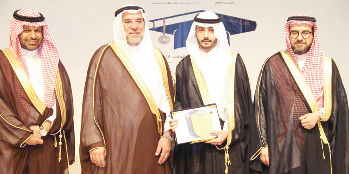 احتفلت كلية الطب بجامعة الملك سعود بتخريج 156 طبيباً بحضور عميد كلية الطب د.خالد فودة وعدد من المسؤولين في الجامعة وأساتذة الجامعة وأولياء الأمور وأمهات الطلاب وقد بدئ الحفل بالتقديم ثم السلام الملكي ثم بدأت مسيرة الخريجين في القاعة متوجهين إلى مقاعدهم وسط ترحيب وهتاف وتحايا من الحضور من آباء وأمهات الخريجين وأقاربهم الذين شاركوهم فرحتهم بحضور الاحتفال ثم كلمة عميد كلية الطب د. خالد فودة تحدث فيها عن الفرحة بتخريج هذه الدفعة من الأطباء مشيداً بماكانوا عليه من خلق وأدب واجتهاد طوال سنوات دراستهم وقال حزنا على فراقهم ولكن ما يسعدنا أنهم حصلوا على تخرجهم أطباء يخدمون وطنهم ومهنئا أولياء الأمور بنجاح أبنائهم وأن هذا نتاج تربيتهم قطفوا ثمارها هذا اليوم سائلاً الله لهم التوفيق في حياتهم العملية، بعدها ألقى الخريج أحمد الدخيل كلمة الخريجين قدم فيها شكره للجامعة ولأعضاء هيئة التدريس بكلية الطب مباركاً لزملائه تخرجهم ومقدماً شكره لكل أب وأم بذلوا وتعبوا حتى أكملوا سني دراستهم وشاركوهم فرحتهم هذا اليوم. ثم تم تقديم عرض مرئي لمسيرة الدراسة في الكلية ونماذج من أعمال الطلبة في المستشفيات ومسيرتهم في كلية الطب.